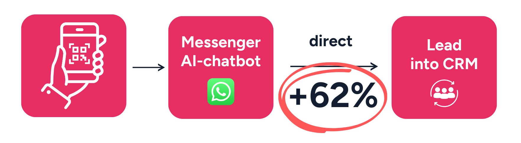 Customers don’t just receive a sales message, they enjoy a personal, helpful conversation. They get relevant information, can ask questions, and are smoothly guided through the decision-making process. No forms. No waiting times. No confusing landing pages. This builds trust, increases conversions, and strengthens your brand experience.